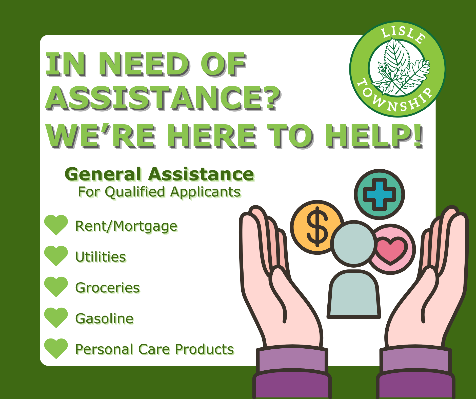 In addition to these Township assistance programs, we can help you sign up for programs that are funded by partner organizations, like the Low-Income Home Energy Assistance Program (LIHEAP) and Salvation Army assistance. If you are in need of financial assistance, please schedule an appointment with our Director of General Assistance, Michelle H., by calling (630) 968-2087 or by email at michelleh@lisletownship.com. Michelle will schedule an intake appointment over the phone that takes approximately 5 minutes to determine eligibility for our assistance programs.